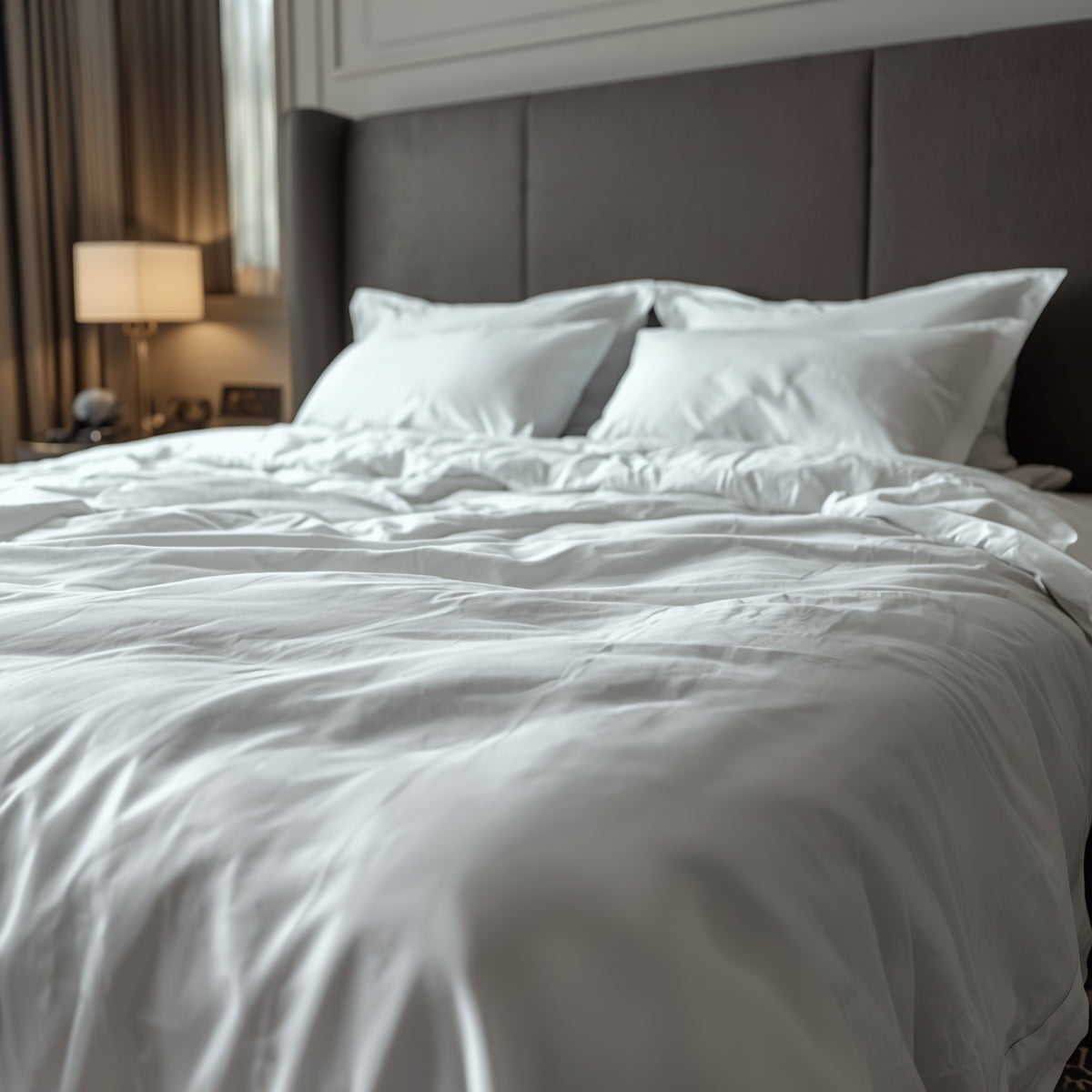 Experimenta el máximo confort con nuestras sábanas premium de 600 hilos, diseñadas para quienes buscan suavidad extrema y un acabado de lujo. Su tejido ultra denso y sedoso brinda una sensación exclusiva y acogedora, transformando tu cama en un oasis de relax.